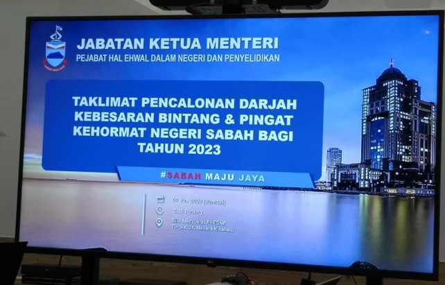 首席部长内政办公室和研究部邀请参与“2023年沙巴州荣誉勋章提名简报”(蔡绵贵,拿督林天平局绅,何顺德)日期:09.06.2023(星期五)时间:2.15pm地点:Pejabat Hal Ehwal Dalam Negeri dan Penyelidikan