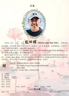很遗憾的本会永久会员龙田耀因车祸而往生了